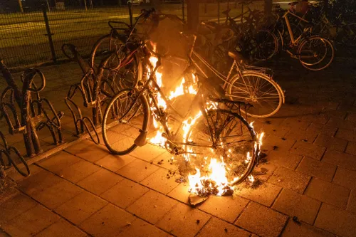 snel ter plaatse gekomen camerajournalisten twee in brand gestoken fietsen weten te blussen nog voordat de