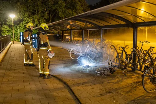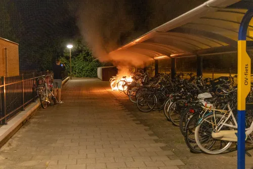 Rond 03.10 uur kwam de melding dat er twee fietsen in brand