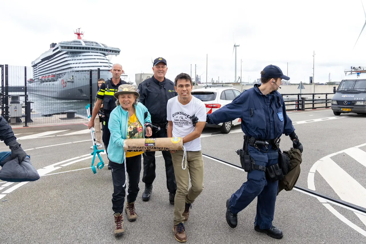 Het is de vijfde keer dat de sluis van IJmuiden wordt geblokkeerd door de klimaatactivisten van Extinction Rebellion. "Het moet afgelopen zijn met de planeetverwoestende cruise industrie", schrijven ze in een statement op social media.