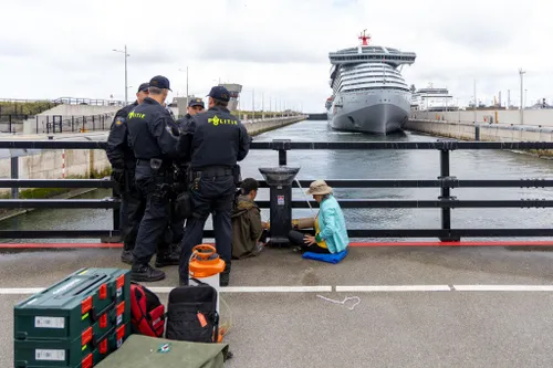 zeesluizen van IJmuiden geblokkeerd. Daardoor konden twee cruiseschepen niet