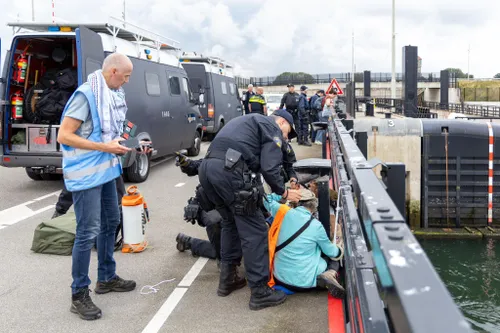 vijf demonstranten op de zeesluis ging en zeven demonstranten op de