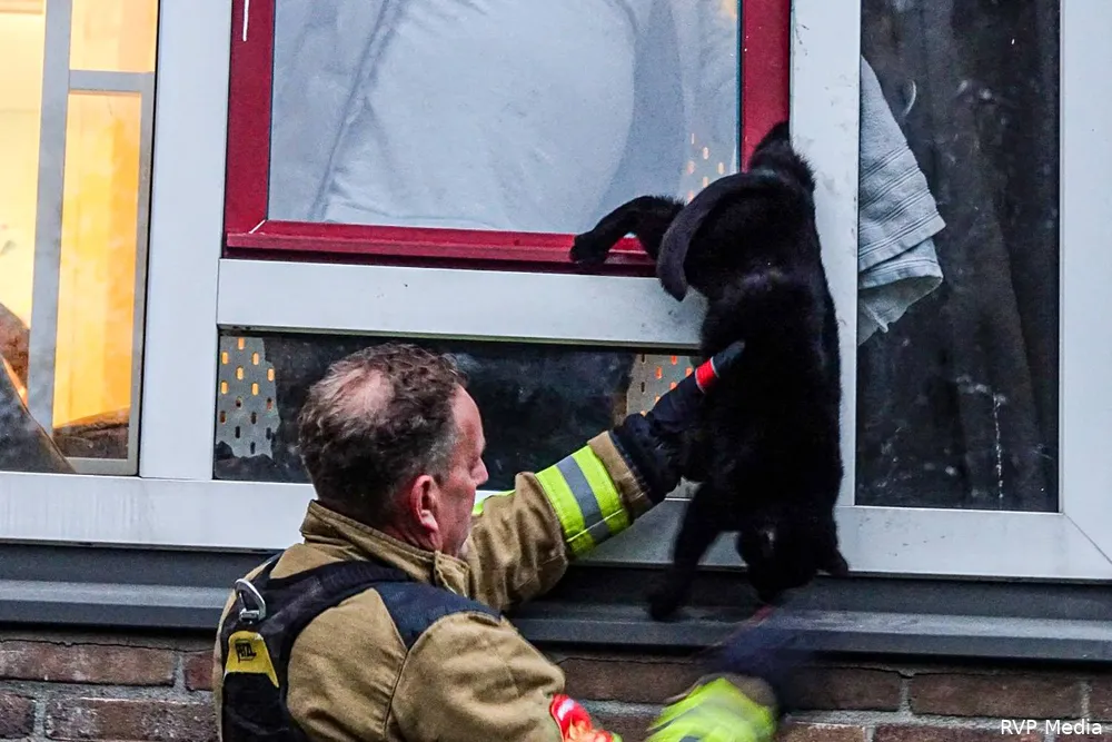 De kat had geprobeerd via het raam naar buiten te springen, maar kwam daarbij klem te zitten. De bewoners probeerden het dier zelf te bevrijden, maar dat lukte niet, waarna ze de brandweer inschakelden.