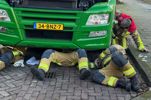 De brandweer heeft de poes losgemaakt en overgedragen aan de