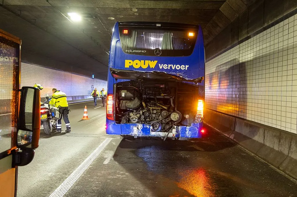 BEVERWIJK - Bij een botsing tussen twee bussen met AZ-fans in de Wijkertunnel bij Beverwijk zijn vijf mensen gewond geraakt, meldt de politie. Ze hebben nek-, rug- en aangezichtsklachten.