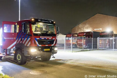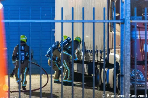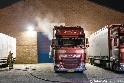 gealarmeerd voor een vermoedelijke brand in een vrachtwagen op het terrein van