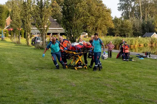 plaatse gereanimeerd en met nekletsel overgebracht naar het ziekenhuis.