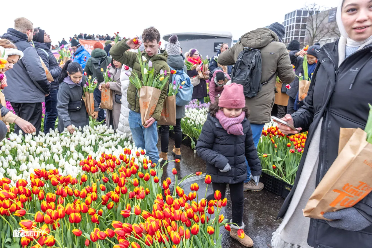 Op Nationale Tulpendag werd met dit feestelijk gebeuren het nieuwe snijtulpen-seizoen ingeluid. Overigens hoefde niemand een tulp af te snijden. De tulpen waren onderaan nog voorzien van hun bolletje en zo was het zelfs voor de allerkleinsten met temperaturen rond het vriespunt 'een koud kunstje' een tulp te bemachtigen. De tulpen konden in speciaal verstrekte zakjes worden meegenomen. Er was maar liefst keus uit 200.000 tulpen en de liefhebbers konden tot de sluitingstijd (17:00 uur) gratis ca 8 tulpen per persoon verzamelen. Dat aantal werd nogal eens overschreden, maar bij het verlaten van de tuin werd door de organisatie een 'eerlijke correctie' uitgevoerd.