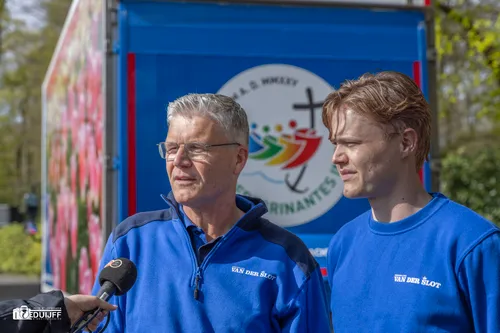 LISSE / ROME - Veertig jaar nadat Paus Johannes Paulus II bij het uitspreken van zijn ‘Urbi et Orbi’ voor het eerst neerkeek op een Nederlandse bloemenzee en de legendarische zin uitsprak ‘Bedááánkt voor die bloeeeeemen’ is vandaag opnieuw een bloementransport naar Rome vertrokken om met Pasen het Sint-Pietersplein op te sieren.