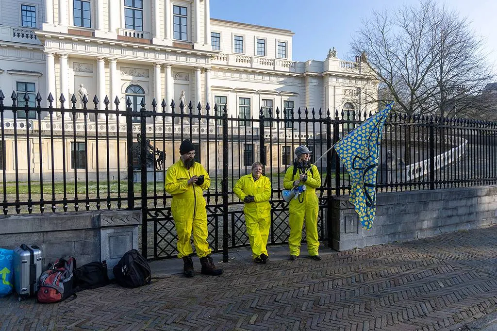 HAARLEM - Extinction Rebellion (XR) heeft maandagochtend alle ingangen van het Noord Hollandse provinciehuis aan de Dreef in Haarlem geblokkeerd. Met teksten zoals kappen met kooks en stop Tata willen ze aandacht vragen voor de situatie rondom Tata Steel.