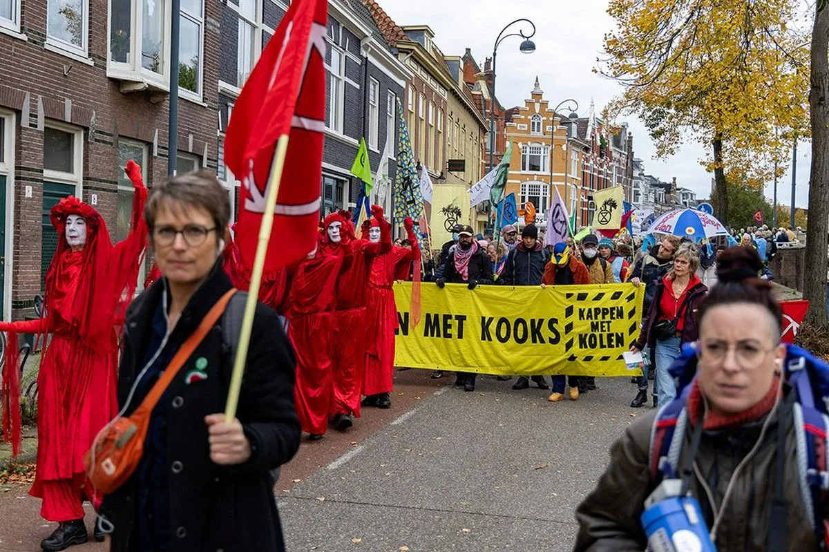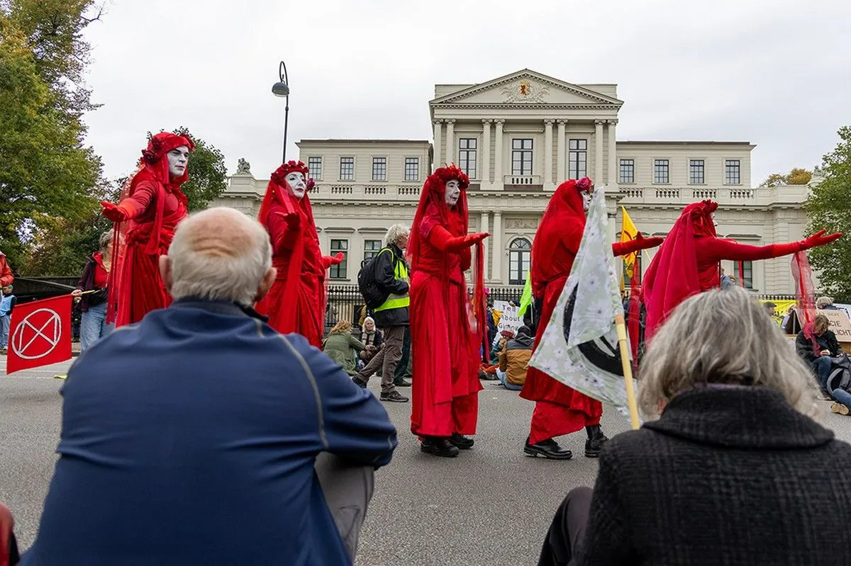 HAARLEM - Extinction Rebellion voert vandaag bij het provinciehuis in Haarlem actie tegen Tata Steel. De actievoerders eisen dat kooksfabrieken 1 en 2 zo snel mogelijk worden gesloten. Die fabrieken staan bekend als de vervuilendste onderdelen van de staalgigant.