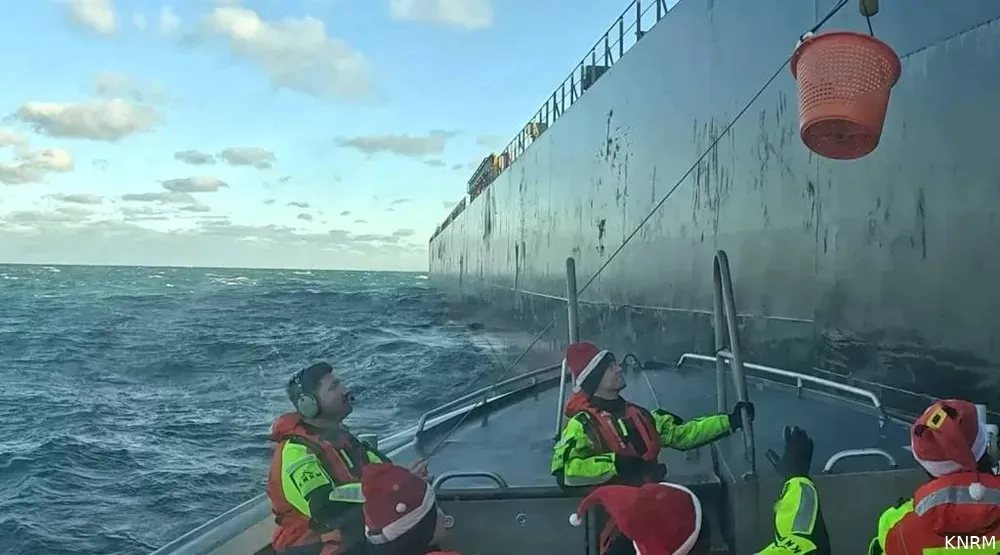 De actie maakt deel uit van een landelijke kerstgroet van de KNRM. Meerdere reddingstations langs de kust voeren deze week uit om schepen op zee te benaderen en een kerstpresentje te overhandigen. Voor de bemanning is het tegelijk een nuttige oefening in navigeren en langszij varen.
