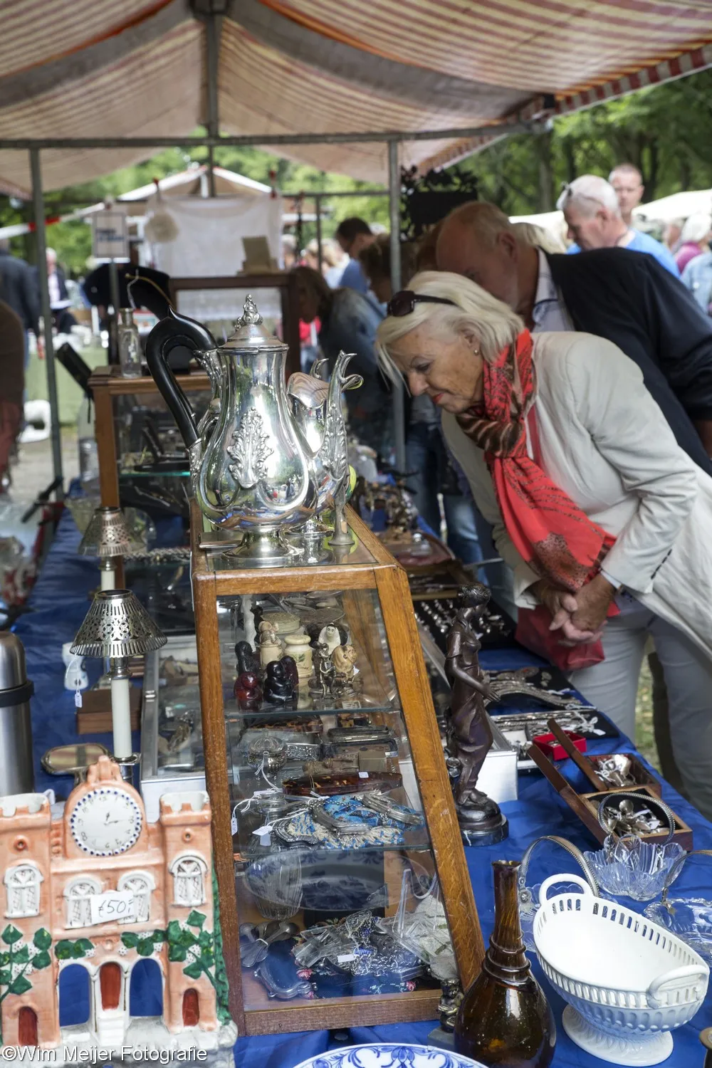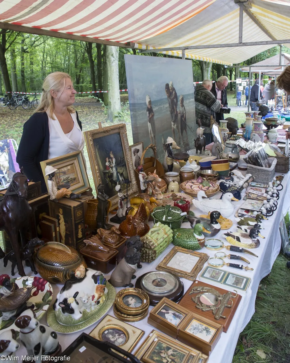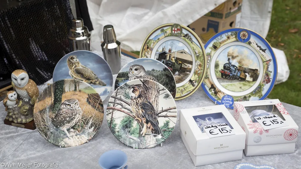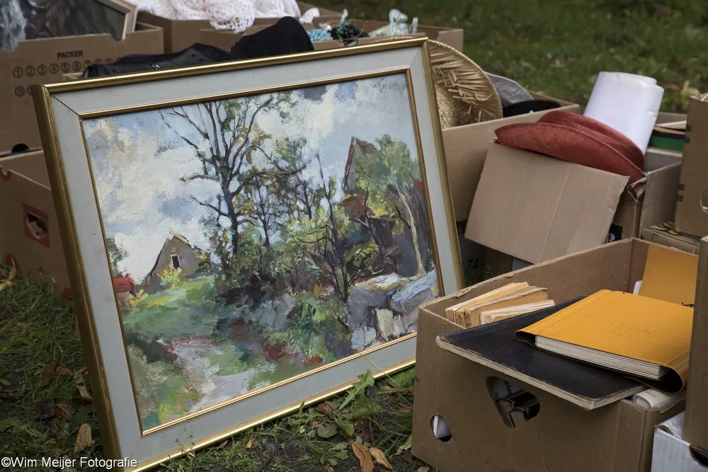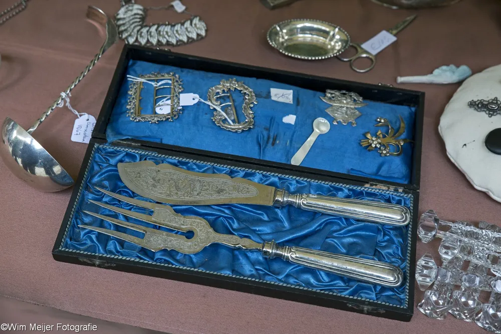 Terug naar landgoed Beeckestein, waar zondag 20 augustus rond de 150 kramen stonden opgesteld in de tuinen. Kramen met van alles wat bij de gemiddelde vijftigplusser diepe herinneringen oproept aan vroege jeugdjaren. Het emaille vergiet, de broodtrommel en de snijbonenmolen van moeder, ansichtkaarten die teruggaan tot ver voor de 2e wereldoorlog, kleding, theelepeltjes en fossielen. In de aanbieding het serviesgoed van grootma zaliger, nog in optimale staat omdat het nooit gebruikt mocht worden uit angst voor breuk. Maar ook de fotocamera uit 1918, een rasechte Kodak Brownie, een Follows & Bate messenreiniger daterend van het eind van de 19e eeuw en poppen met porseleinen koppen.
