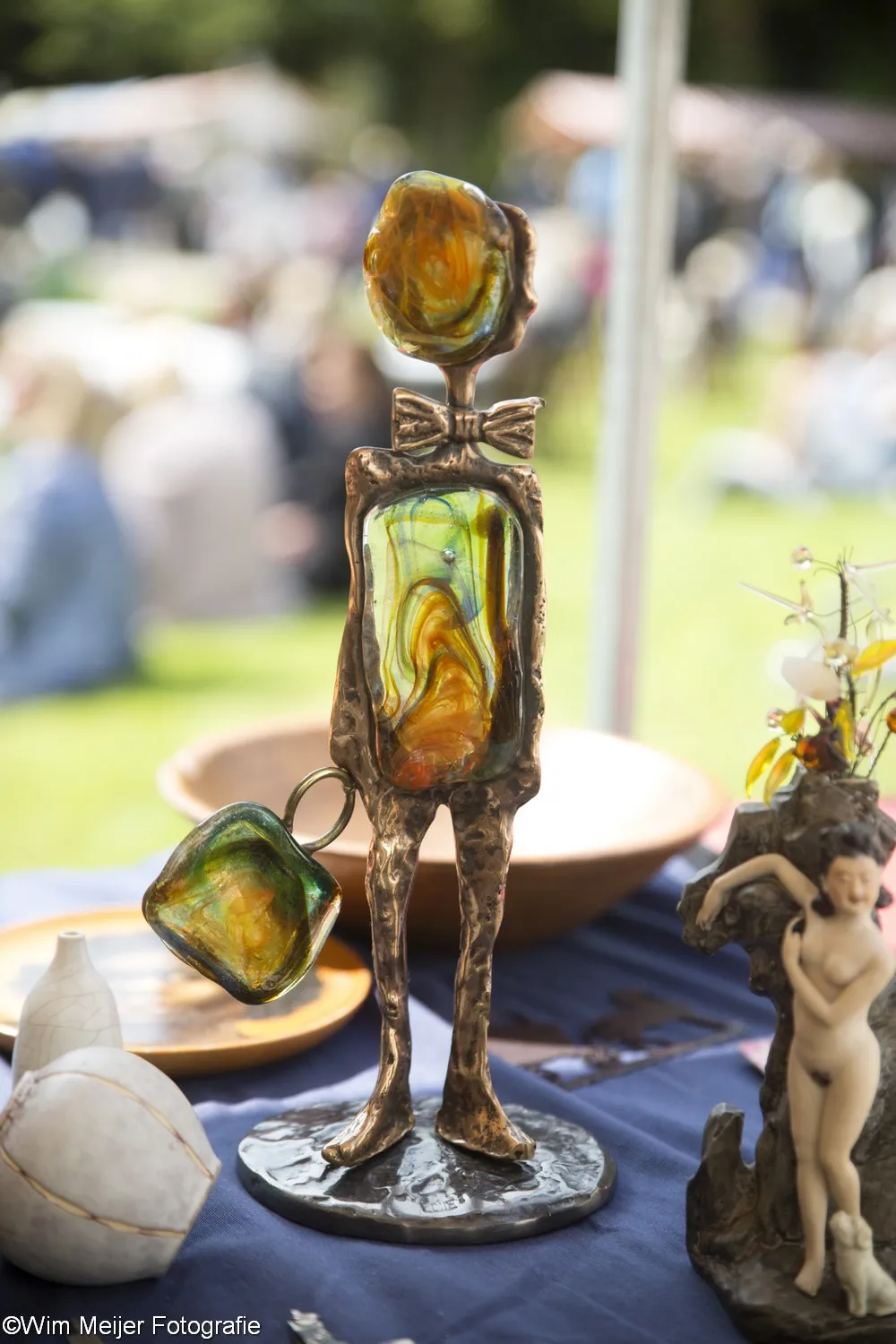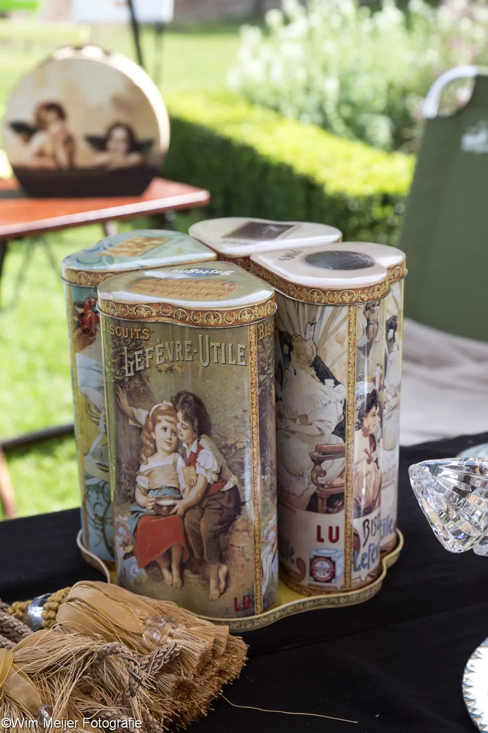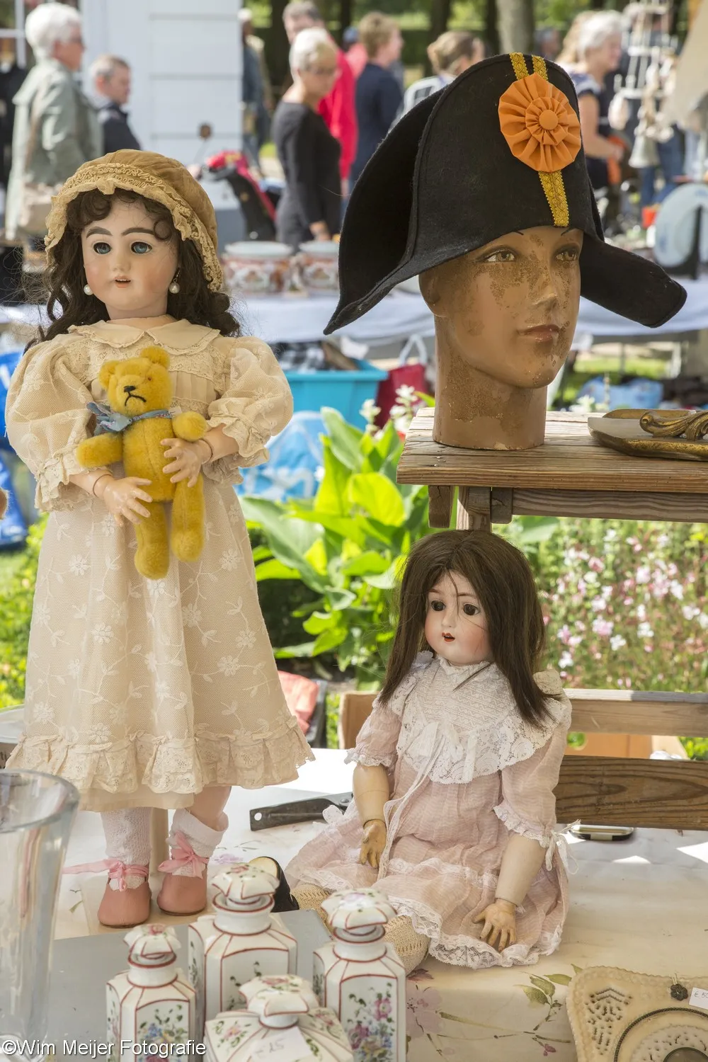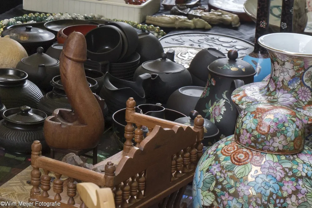 Terug naar landgoed Beeckestein, waar zondag 20 augustus rond de 150 kramen stonden opgesteld in de tuinen. Kramen met van alles wat bij de gemiddelde vijftigplusser diepe herinneringen oproept aan vroege jeugdjaren. Het emaille vergiet, de broodtrommel en de snijbonenmolen van moeder, ansichtkaarten die teruggaan tot ver voor de 2e wereldoorlog, kleding, theelepeltjes en fossielen. In de aanbieding het serviesgoed van grootma zaliger, nog in optimale staat omdat het nooit gebruikt mocht worden uit angst voor breuk. Maar ook de fotocamera uit 1918, een rasechte Kodak Brownie, een Follows & Bate messenreiniger daterend van het eind van de 19e eeuw en poppen met porseleinen koppen.