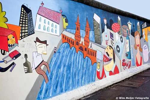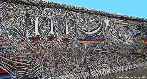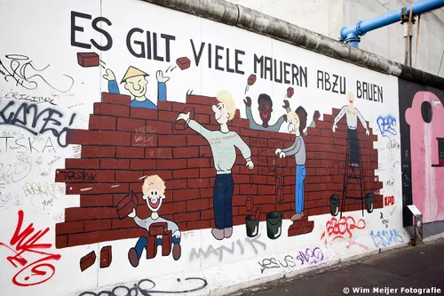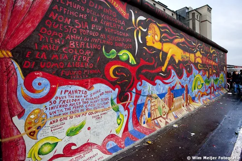 Hieronder een fotoserie van een deel van de Berlijnse Muur: de East Side Gallery , een stuk van de Berlijnse Muur met een lengte van 1.316 meter, in 1990 beschilderd door 118 kunstenaars uit 21 landen. De kunstenaars gaven in de schilderwerken hun visie op de politieke situatie in het Berlijn van 1989/1990. Inmiddels is de Side Gallery de grootste permanente openluchttentoonstelling ter wereld en is een verzoek ingediend om het op te nemen op de werelderfgoedlijst van UNESCO.