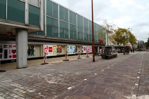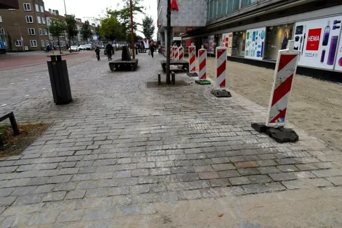 van de bestrating van de stoep ter hoogte van de HEMA in de Lange Nieuwstraat.