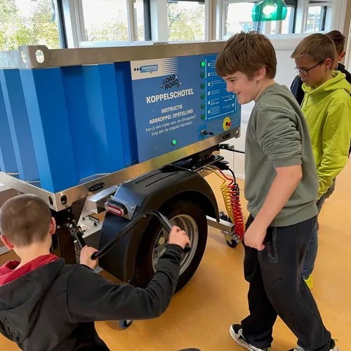 die hen laten kennismaken met de wereld van vrachtwagens en warehouses.