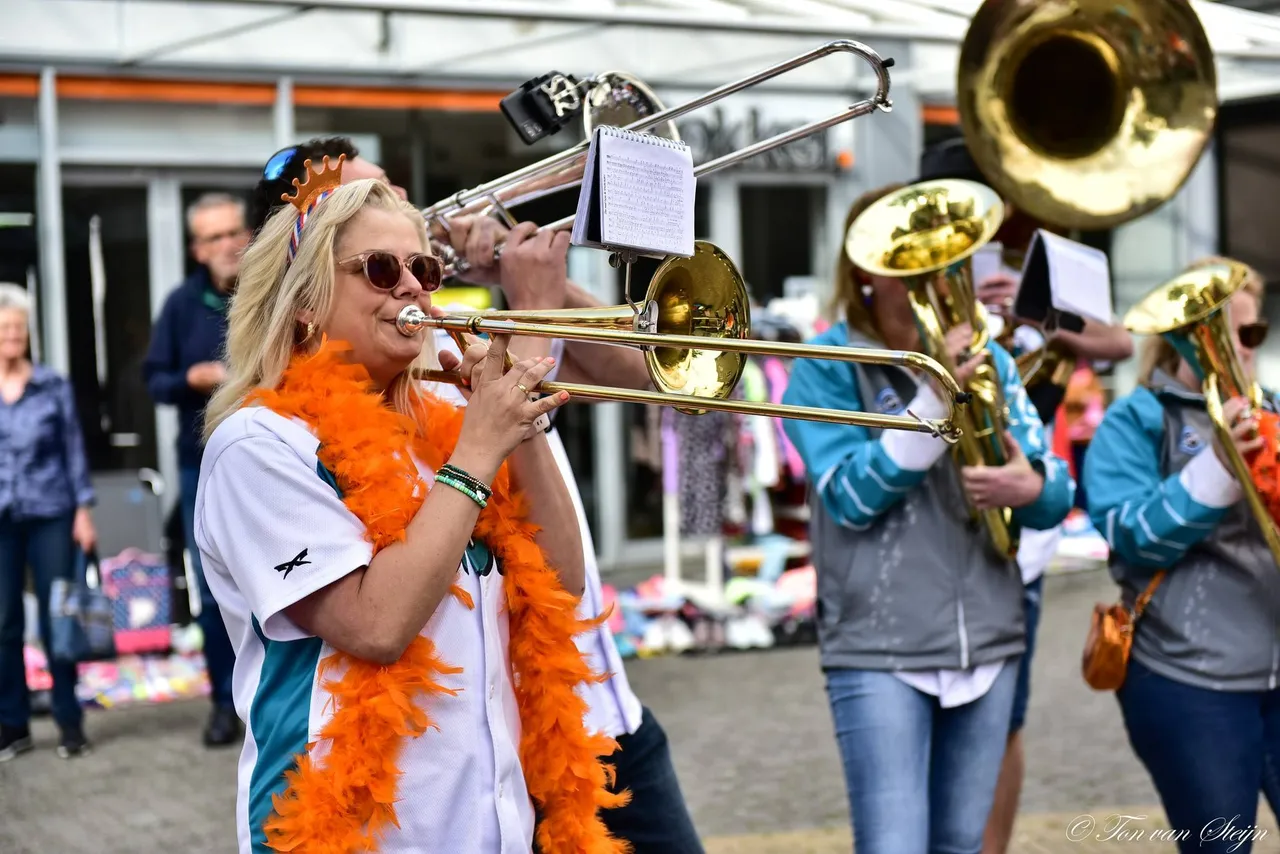 In het centrum van Velserbroek was er ook van alles te beleven op de vrijmarkt. Orkest BOOH zorgde daar voor de muzikale omlijsting.