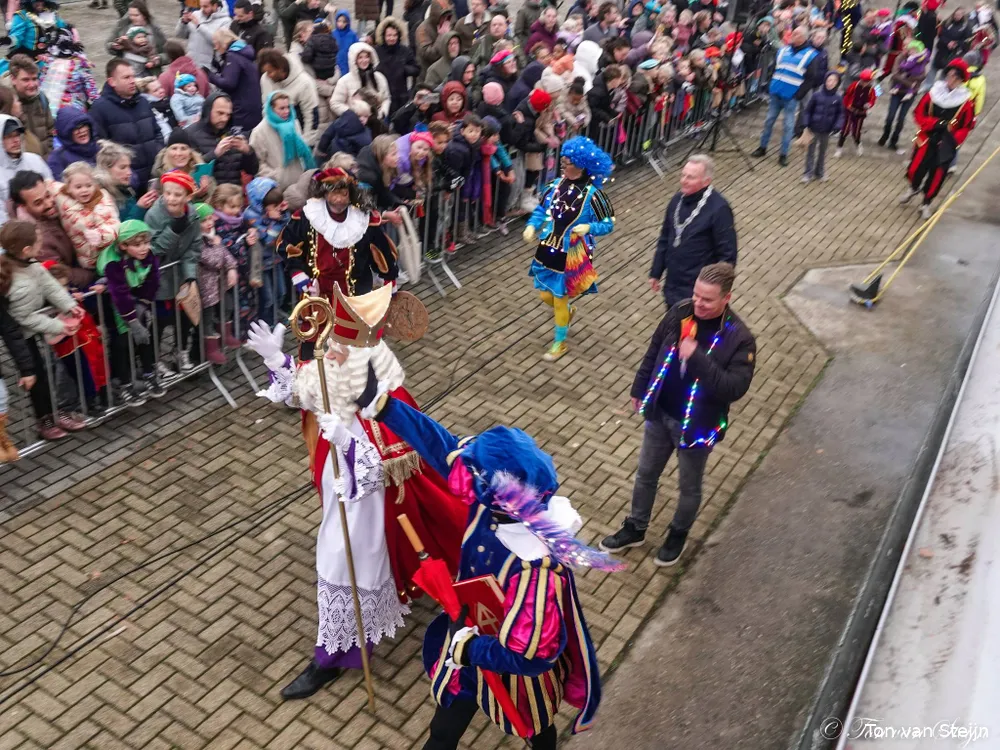 Rond 16.30 uur meerde de stoomboot aan en werd Sinterklaas officieel ontvangen door burgemeester Frank Dales van de gemeente Velsen. Onder luid gejuich en begeleid door muziek en lichtdecoraties maakte de Sint kennis met de vele kinderen die, ondanks de kou, enthousiast zwaaiend langs de kade stonden.