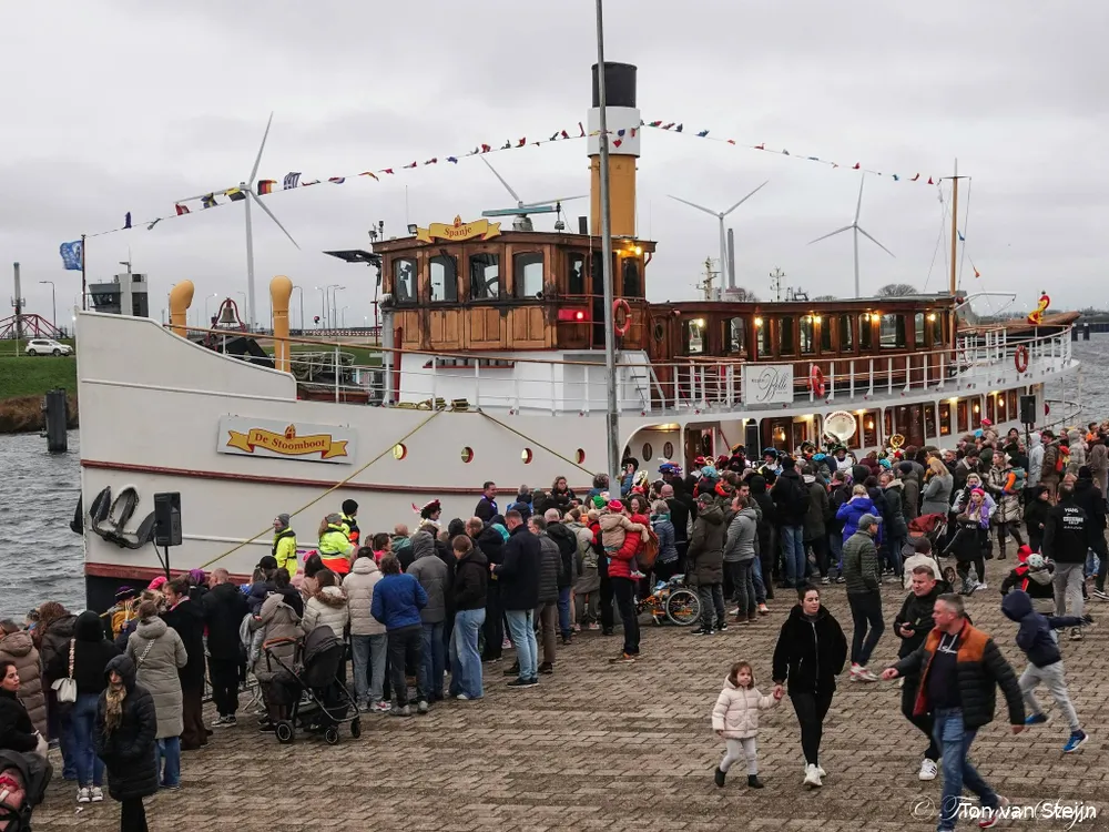 IJmuiden stond gisteren massaal langs de route om Sinterklaas en zijn meer dan 150 Pieten feestelijk te verwelkomen tijdens de eerste avondintocht in tien jaar. De goedheiligman arriveerde per stoomboot aan de Loswalkade bij de kleine sluis, waar het voorprogramma om 16.00 uur al zorgde voor een warme opbouw van de spanning.