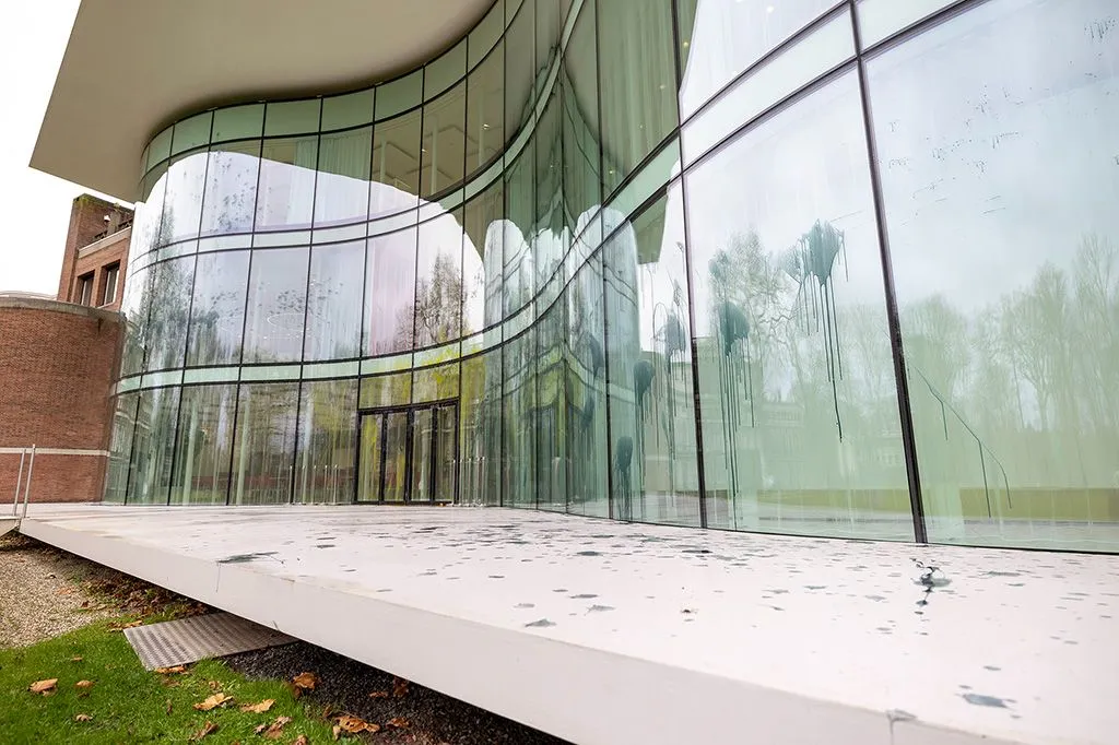 Statenleden hadden hun vergadering net onderbroken voor de lunch en konden zien hoe de ongeveer tien in gele pakken gehulde activisten gele en zwarte verf op de ramen spoten. "Ik vind het niet normaal", reageerde commissaris van de Koning Arthur van Dijk desgevraagd.
