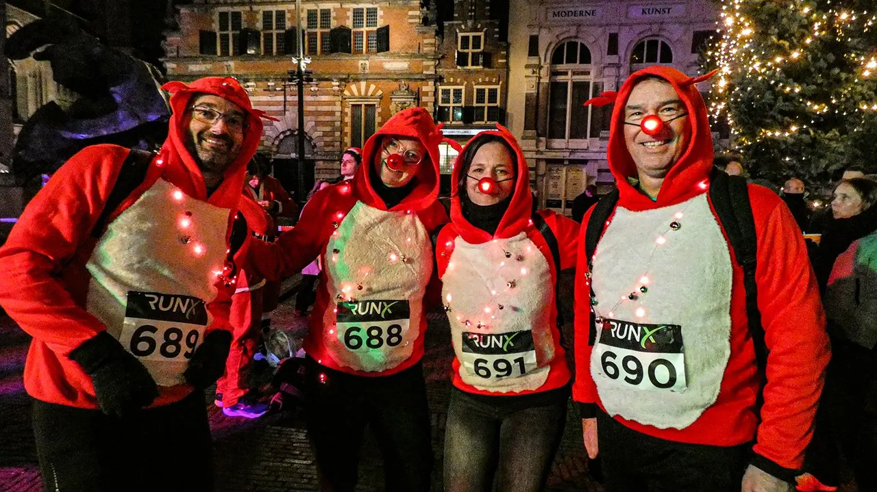 Zoals door de jaren heen een echte traditie is geworden was ook dit jaar weer het uur voorafgaand aan het startschot al een hoogtepunt op zichzelf. Aangevoerd door opzwepende muziek vanaf het podium veranderde de Grote markt in één grote deinende massa met Kerstmannen, Kerstvrouwen, sneeuwpoppen en rendieren die zich vrolijk en uitbundig voorbereidden op het startschot dat uiteindelijk om 19.30 uur werd gegeven door Trijntje Oosterhuis.