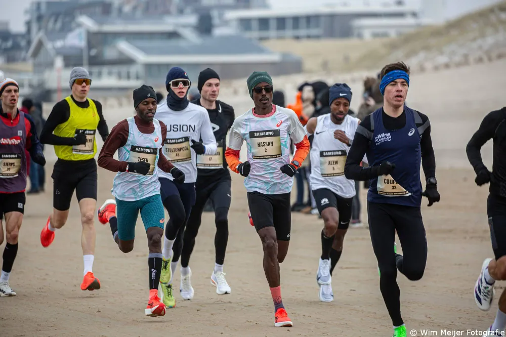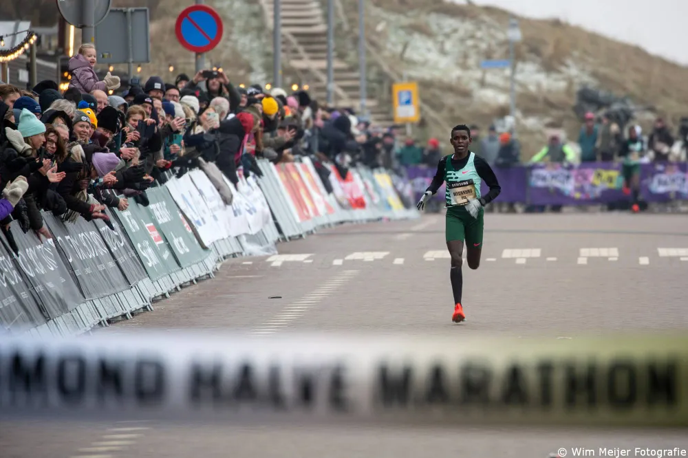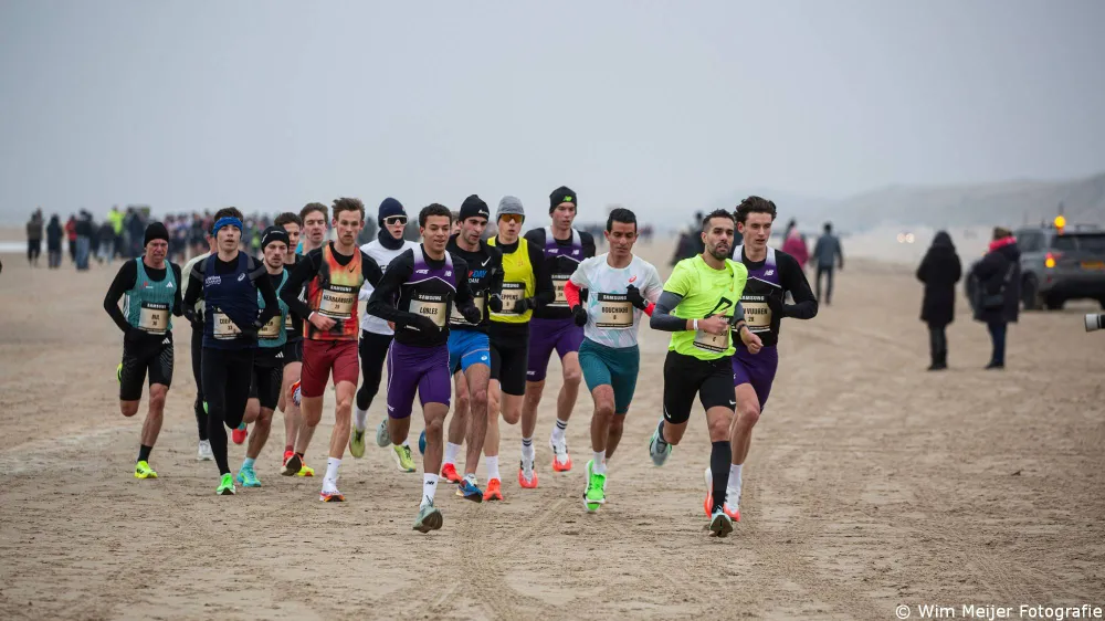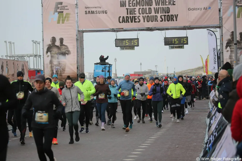 In totaal stonden er vandaag zo’n 13.500 lopers aan de start van de 51e editie van de Egmond Halve Marathon, waarvan verreweg het merendeel recreanten. Vooral voor hen wat het een forse uitdaging, niet alleen door de afstand en het per definitie al zware parcours, maar vooral ook door de winterse omstandigheden. Vooral op het strand hadden de deelnemers te dealen met vrieskou in combinatie met tegenwind wat een gevoelswaarde opleverde van rond de min 10 graden. Mutsen, handschoenen, heel veel laagjes, warmtekussentjes en zelfs verwarmde handschoenen werden ingezet om de koude te trotseren. Eenmaal bij Castricum aangekomen bleken al deze attributen niet meer nodig, want in de beschutting van de duinen en de wind licht in de rug werden prima loopomstandigheden, wat ertoe leidde dat er toch vooral lachende gezichten over de finish kwamen.
