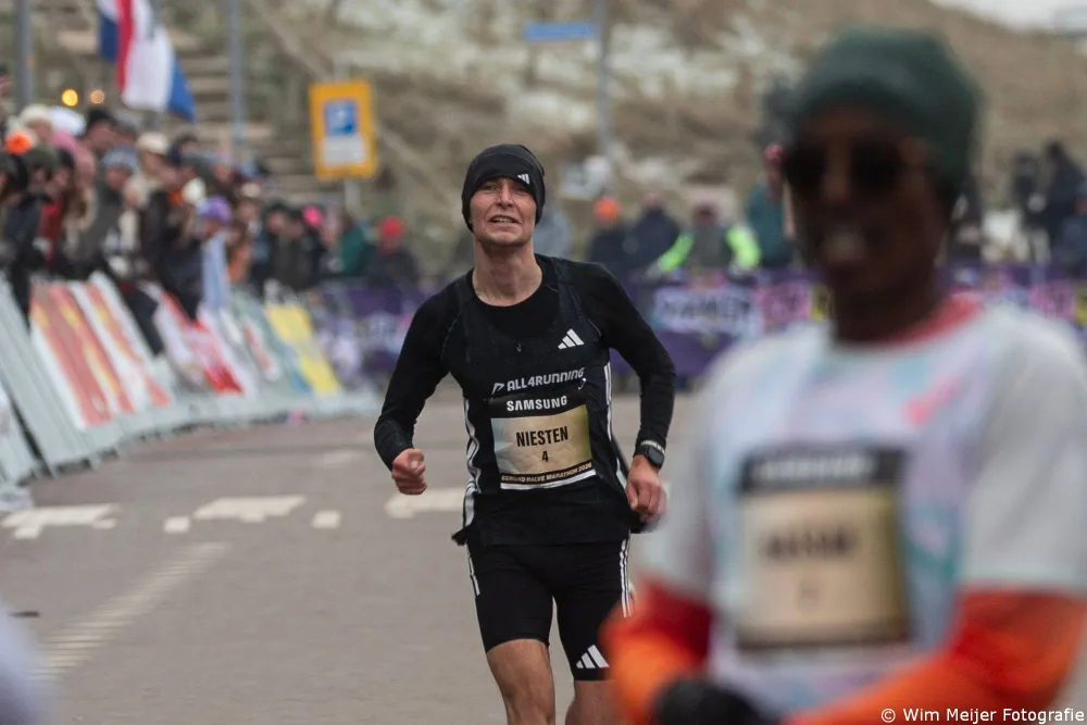 Niesten bleef lang in de race voor de overwinning. Op het strand bleef een grote kopgroep atleten bij elkaar. Pas in de duinen werd deze uitgedund. In de laatste kilometers moest Niesten de latere winnaar Alew en nummer 2 Suldan Hassan uit Zweden laten gaan. Dat gebeurde op ongeveer 800 meter van de finish ter hoogte van de vuurtoren.