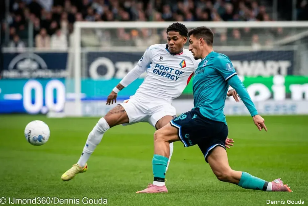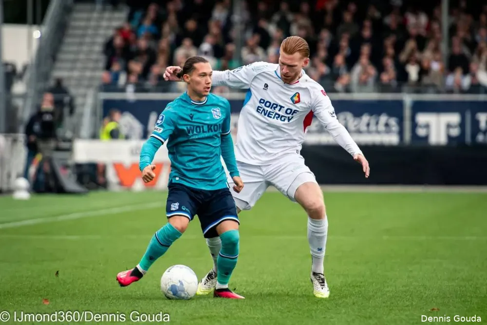 Vanaf de eerste bal omwenteling was het ‘’vrouwen en kinderen eerst’’ voor een Telstar dat lijdzaam en passief toezag dat de gasten als een vlijmscherp mes keer op keer door de ‘’Telstar-taart’’ heen sneden. Illustratief: Heerenveen verzamelde maar liefst 11 corners in de eerste 28 minuten! Dat het pas halverwege het eerste bedrijf 0-1 werd na slordig balverlies van Dylan Mertens was een regelrecht wonder en kon voor bijna de volle 100% op het conto worden geschreven van Ronald Koeman jr die met prima reflexen een monsterscore voor de sprankelende Friezen bij rust belette. Alleen Jacob Trenskow en Dylan Vente vanaf de stip (handsbal Nils Rossen) haalden voor de energieke en frisse Friezen de trekker over. Toch kreeg Telstar ‘’een reddingsboei toegeworpen’’ toen een vrije trap van Guus Offerhaus, de eerste Velsense -kans, in blessuretijd het hoofd van Jeff Hardeveld vond;1-2.